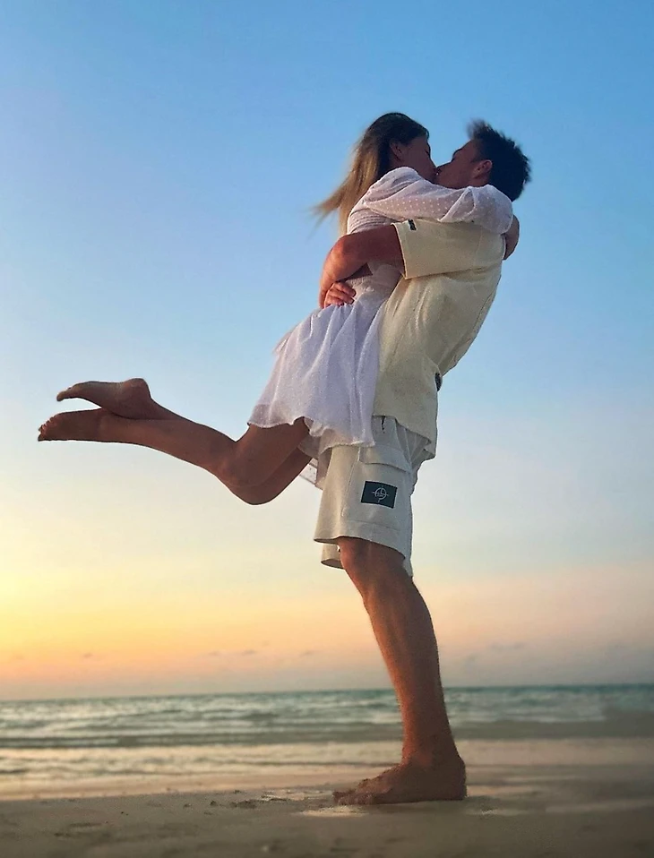 Российская фигуристка Алена Косторная выложила в соцсети фото, которое окончательно подтверждает ее роман с партнером Георгием Куницей - пара целуется на фоне заката.
