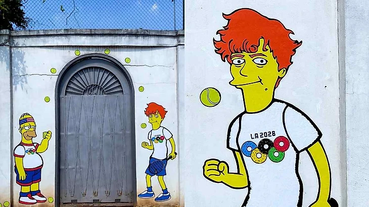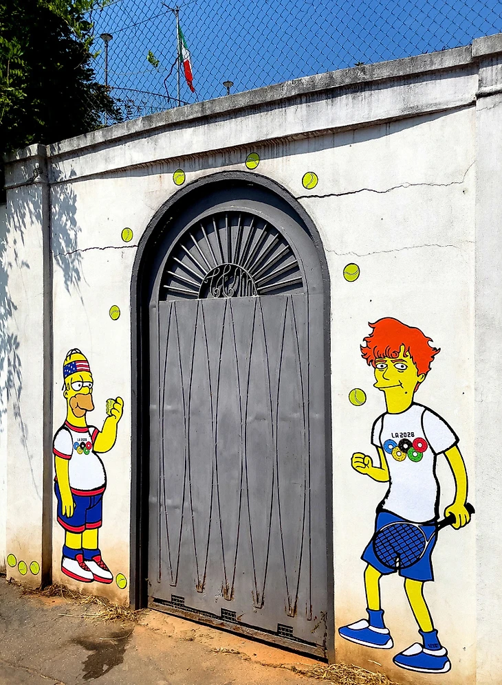 Изображение Янника Синнера в стиле Симпсонов появилось на стене теннисного клуба Милана