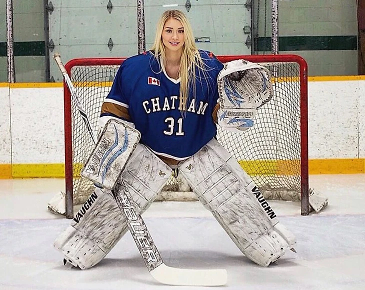 24-летняя девушка ранее защищала ворота команды «Блюуотер Хокс» из Онтарио, выступающей в Провинциальной женской хоккейной лиге, но в 2019 году объявила о завершении карьеры, чтобы посвятить себя модельному бизнесу.