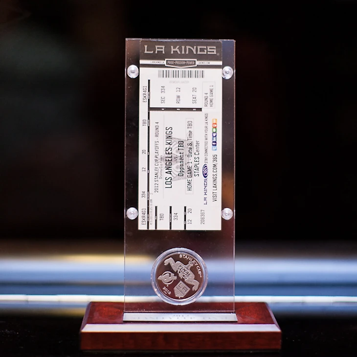 Теперь о хоккее. В России традиционные «вещи на память» — шайбы, клюшки, свитера. В Северной Америке ещё и постеры, программки и вообще любые клочки бумаги с автографами. И как раз билеты. Тамошие продавцы мерчендайза продумывают всё до конца и предлагают в довесок множество подставок-рамок-держателей для меморабилий. Вот штука для билетов: