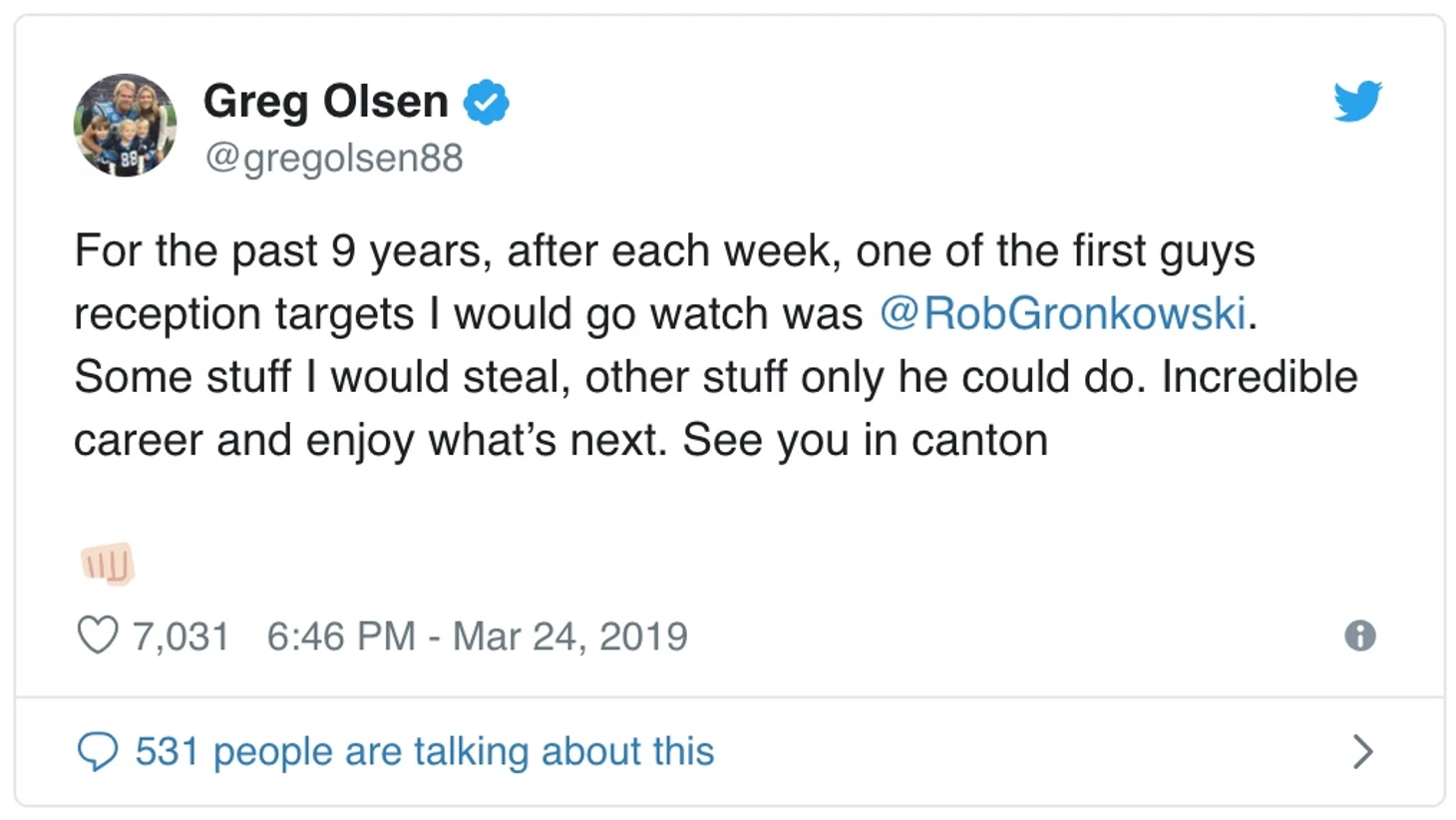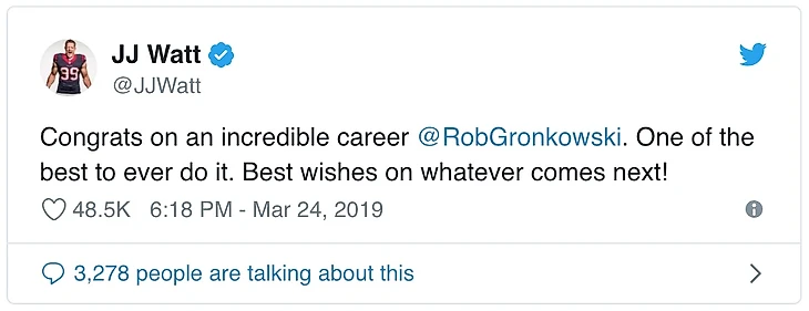 Случилось то, о чем давно ходили слухи: Роб Гронковски завершил карьеру в НФЛ. Гронковски, также известный как «Гронк», заявил о своем решении в соцсетях.