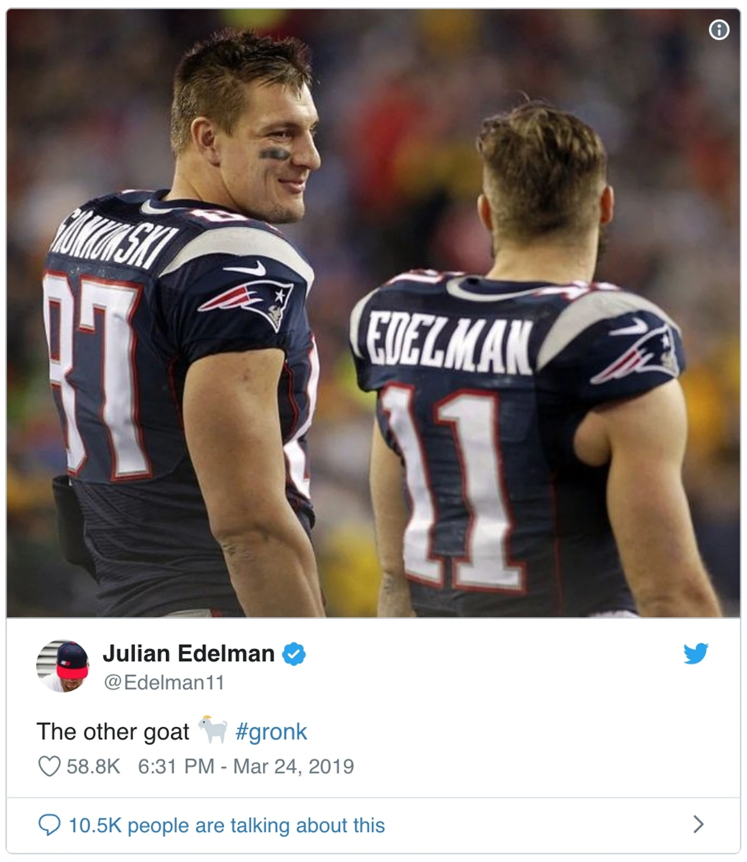 Но в плей-офф в самых критичных моментах Том Брэди опирался именно на него. Важность его пойманных мячей на последних минутах против «Канзас-Сити Чифс» и в Супербоуле против «Лос-Анджелес Рэмс» нельзя недооценивать.