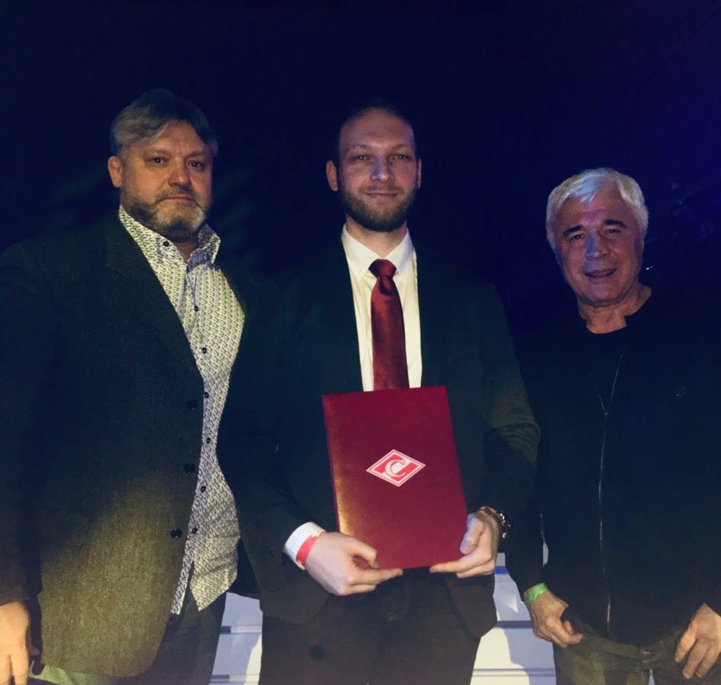 Денис Милов (центр) с председатели МФСО и РФСО «Спартака» Евгением Ловчевым и Андреем Слушаевым.