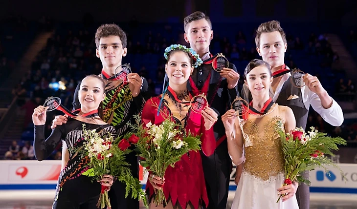 (Призеры Финала Юниорского Гран-При 2018: 1 место - Анастасия Мишина/Александр Галлямов, 2 место - Полина Костюкович/Дмитрий Ялин, 3 место - Аполлинария Панфилова/Дмитрий Рылов)