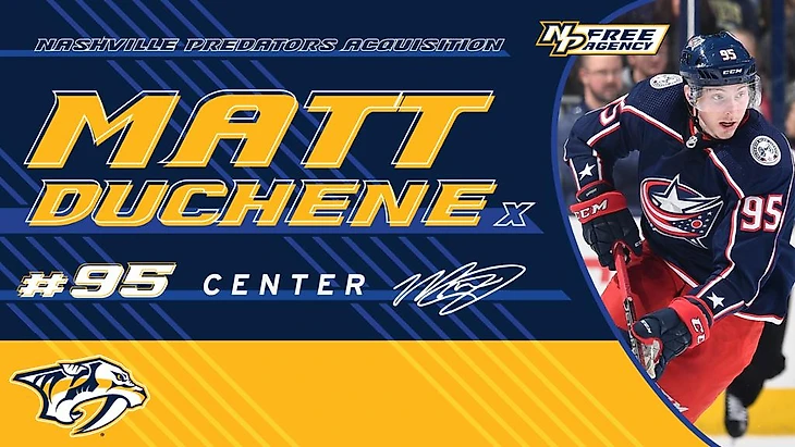 Далее – Мэтт Дюшейн и его переход из «Коламбуса» в «Нэшвилл». 7-летний контракт на 56 миллионов долларов, половина из которых – подписные бонусы. Дюшейн – хороший, умный игрок, достигший своего потолка в «Колорадо», не прижившийся в «Оттаве» и явно не подходящий «Коламбусу». «Нэшвилл» же неплохо разгрузил свою платёжку после одного громкого обмена, о котором чуть попозже, потому приобретение Дюшейна выглядит закономерно и круто.
