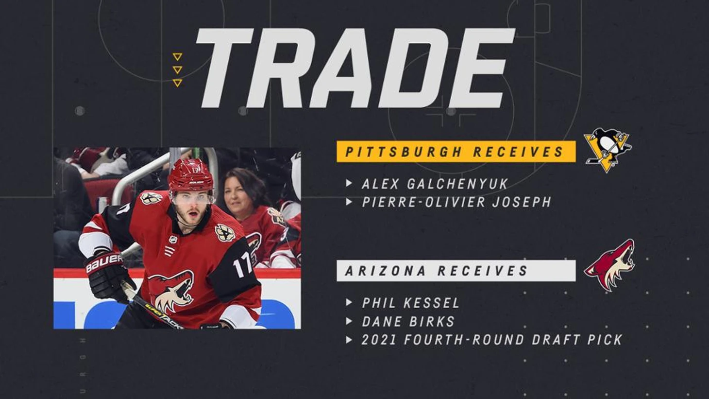 На пятом месте обмен между «Питтсбургом» и «Аризоной», по итогам которого в стан «пингвинов» переходит Алекс Гальченюк, а в обратном направлении уезжает Фил Кессел. Конечно, в обмене также поучаствовали ещё 2 игрока, а «Аризона» получила пик в 4 раунде 2021 года, но суть именно в Гальченюке и Кесселе. Причём нельзя сказать, кто выиграл от этого обмена больше: «Аризона» получила стабильного крайнего с идеальной медицинской картой, а «Питтсбург» - крутого центра для второго-третьего звена.