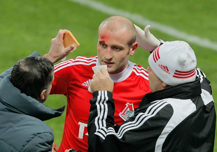Но долго это продолжаться не могло, и за 20 минут до финального свистка случилось то, чего ни до, ни после РПЛ не видела. Гонсалес абсолютно привычно вдарил Асатиани по ногам, но тот от неожиданности не смог сдержать эмоций. Защитник «Локо» поднял мяч и запустил его ровно в голову обидчика, на что Марк ответил хорошим ударом головой. Потасовка продолжилась и вот-вот могла перерасти в ожесточённую драку, однако товарищи по команде с обеих сторон уберегли. Файтерам прописали по красной карточке.