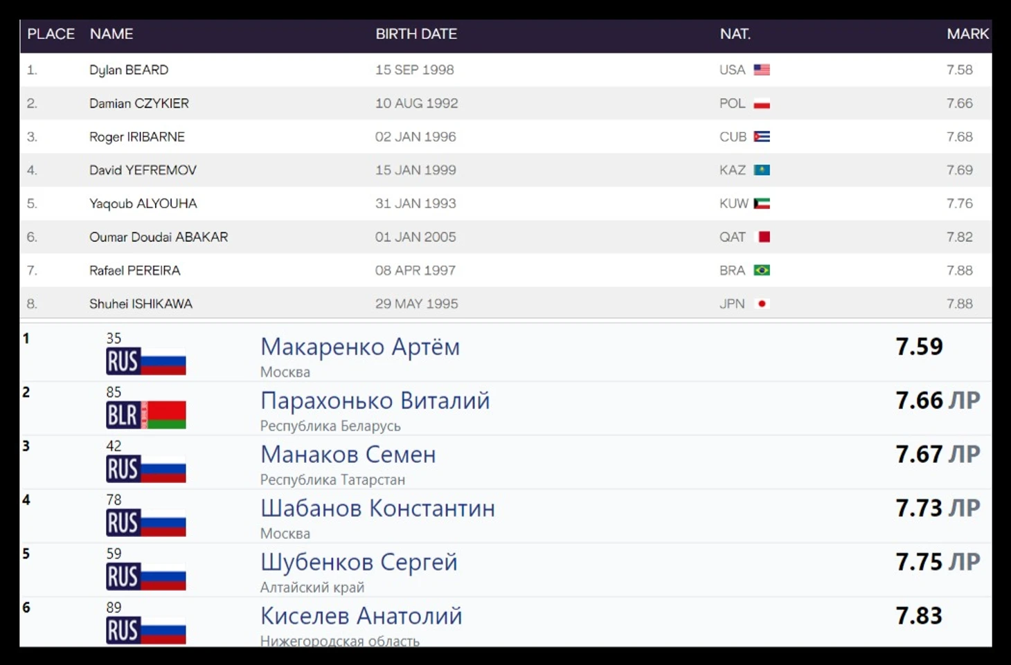 Белорус Парахонько показал идентичный результат с Шукером, а Манаков обогнал кубинца ставшего третьим. Мастодонты барьеров Шабанов и Шубенков проигрывают молодым визави, однако, в Астане они бы спокойно попадали в топ-5.