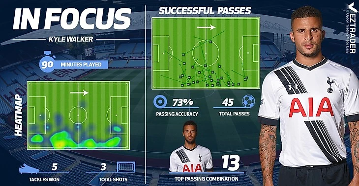 В одном из таких моментов Уокер отдал прострельную передачу на Эрика Ламелу, который, к сожалению, попал в штангу. Чуть позже Кайл проверил на прочность голкипера "Астон Виллы" Брэда Гузана, и теперь в его активе девять ударов по воротам соперника с начала сезона, семь из которых пришлись в створ. Также на его счету гол в ворота "Вест Хэма" в ноябре.