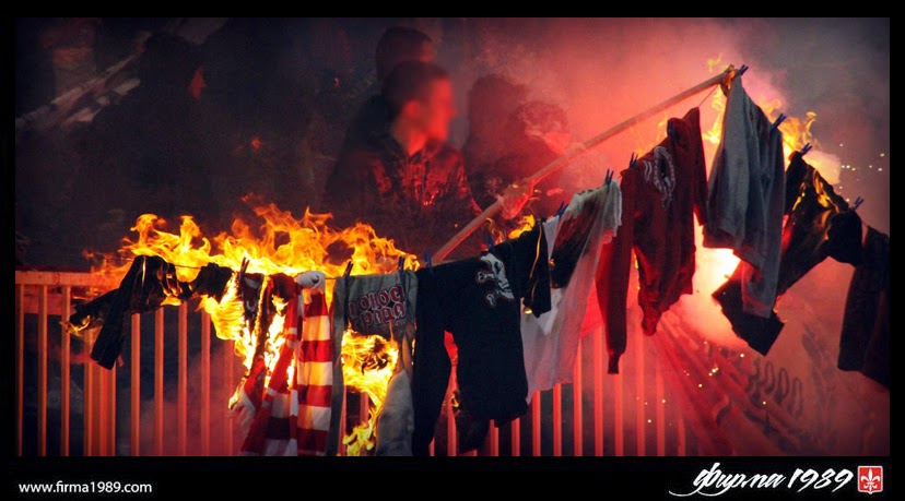 События 3-го тура в жизни болельщиков не ограничились мои недавним постом. Оказывается, что полиция остановила разгорячённых "гробарей", которые пытались пойти на Маракану, а "Войводина" насобирала кучу "трофеев" с выездников и сожгла прямо на матче.