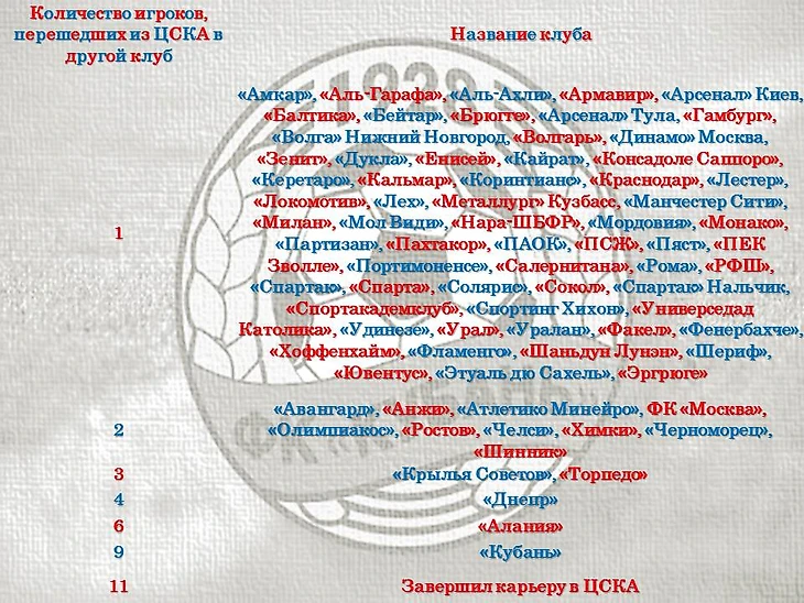 В тоже время, другие армейские продажи в ведущие европейские команды не могут похвастаться подобными успехами, в основном после ЦСКА карьера футболистов (Красич, Жо, Думбия, Муса) резко взлетала, но затем шла по нисходящей, что только доказывает тепличность отношений внутри красно–синего коллектива. Большое количество легионеров не смогло толком проявить себя и в составе армейцев, отправившись скитаться по арендам, или были вовсе проданы (Янчик, Рамон, Калоуда, Цубер и др.).