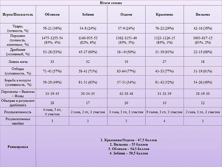 Вальковяк Вальдемар представляет большое статистическое исследование выступления Ивана Облякова в завершившемся чемпионате