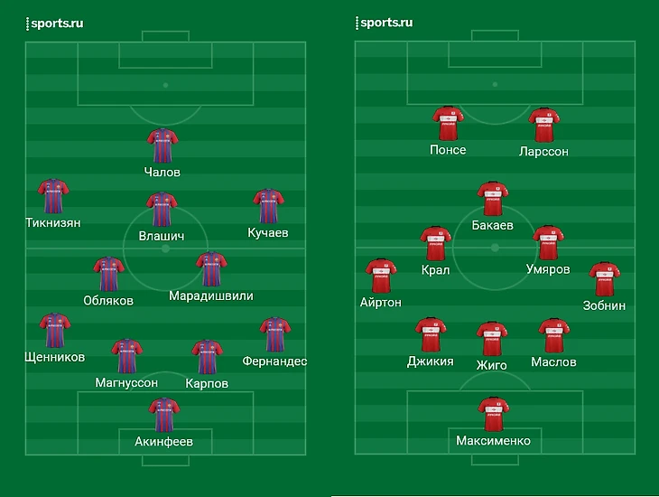 Стартовые составы. Неожиданное появление Карпова. Соболев и Кокорин на скамейке запасных.