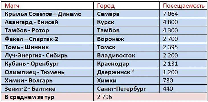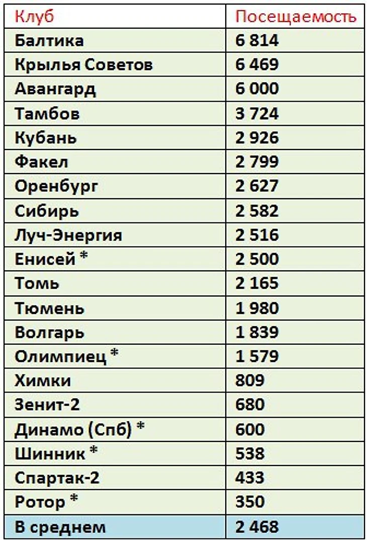 * - Олимпиец, Динамо (Спб), Ротор и Шинник играли в чужих городах, Енисей играет в манеже.