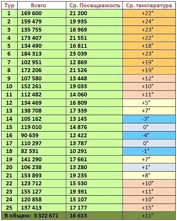 Изменение посещаемость в сравнении с прошлым сезоном: