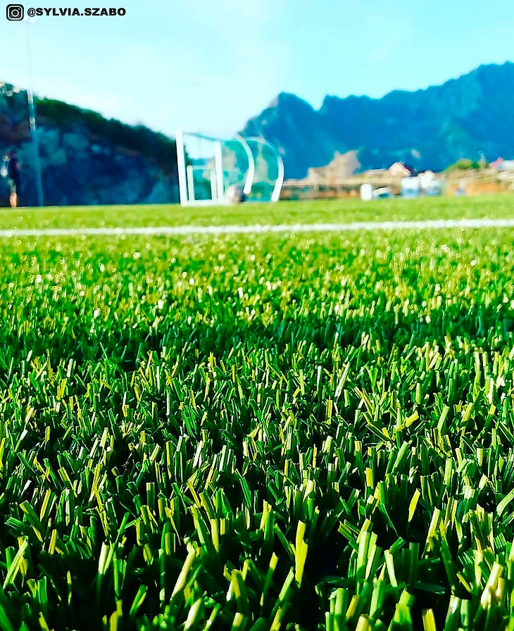 Для этого поля выбирали самую ровную поверхность на острове. Само покрытие, конечно же, искусственное. Скалистая местность просто не позволила бы нормально расти натуральному газону.