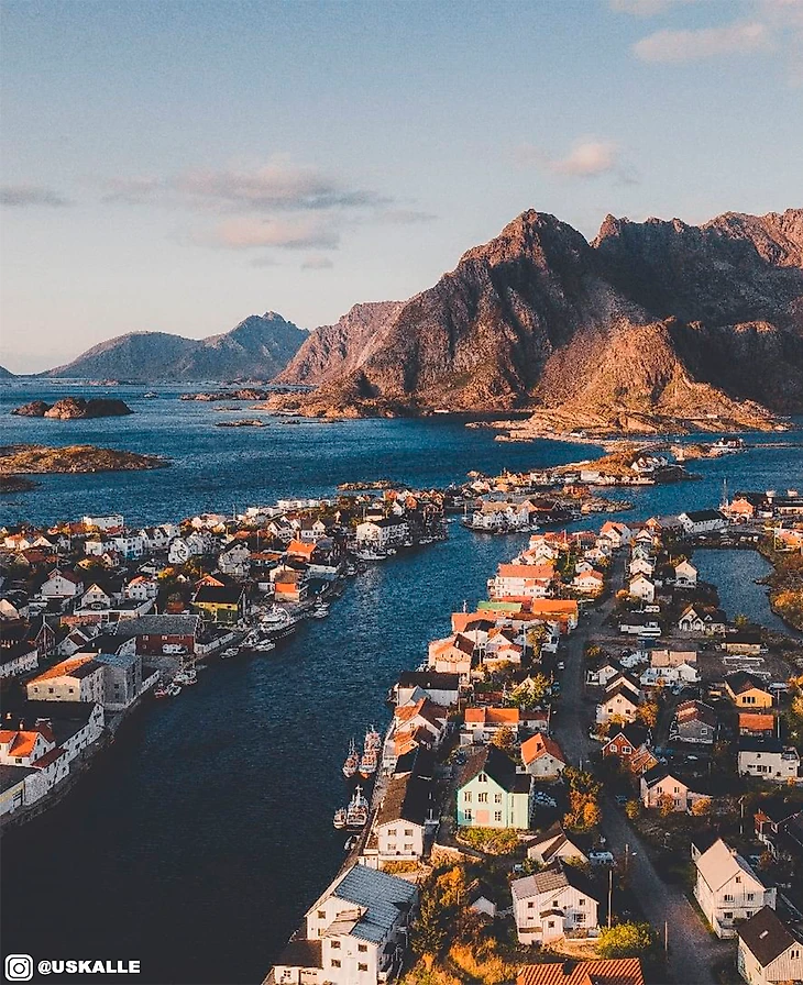Рыбацкая деревня Хеннингсвер расположена на нескольких небольших островках, соединенных между собой мостами. Местных жителей тут насчитывается всего лишь около 500 человек.