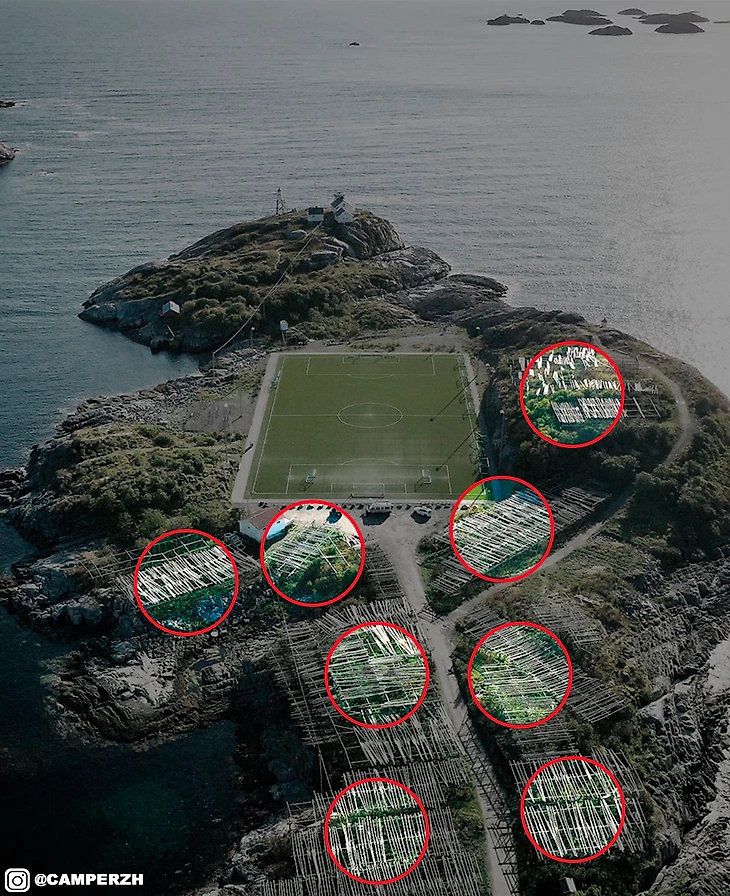 Ещё один момент, который нельзя не отметить. Вокруг поля расположены стеллажи для сушки рыбы.