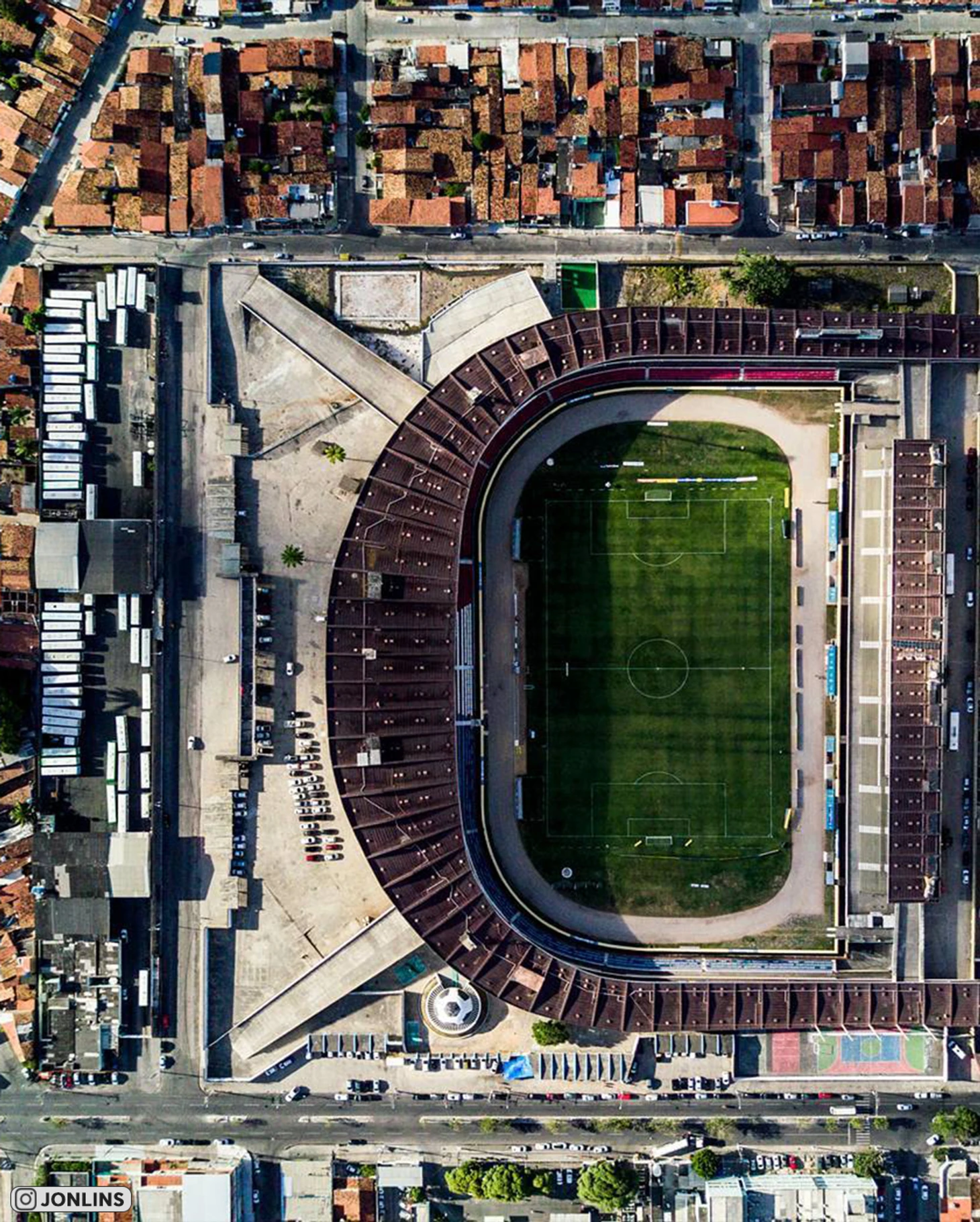 Бразильский стадион, названный в честь легендарного футболиста Пеле (Estadio Rei Pele). Показываем его с высоты