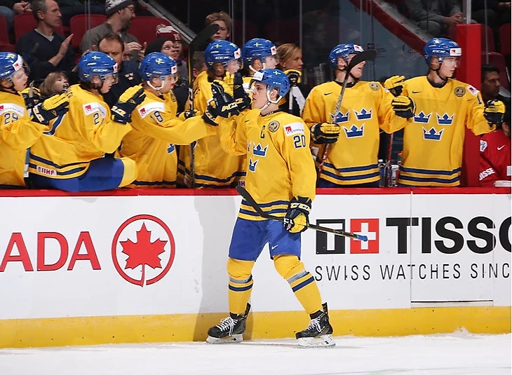 На этом турнире, несмотря на то, что порядка 14-15 игроков презентативного возраста выступают в НХЛ, хватает классных исполнителей с отличным будущим в НХЛ. Среди них центр из «Ферьестада», Юэль Эрикссон Эк. Вторая часть его фамилии вообще-то правильно читать, как «Иэкь», но некоренной житель Швеции, может и язык потянуть произонся это, так что пусть будет Эком. Эк и в первой игре отличился (1+1), и со Швейцарией сделал дубль.