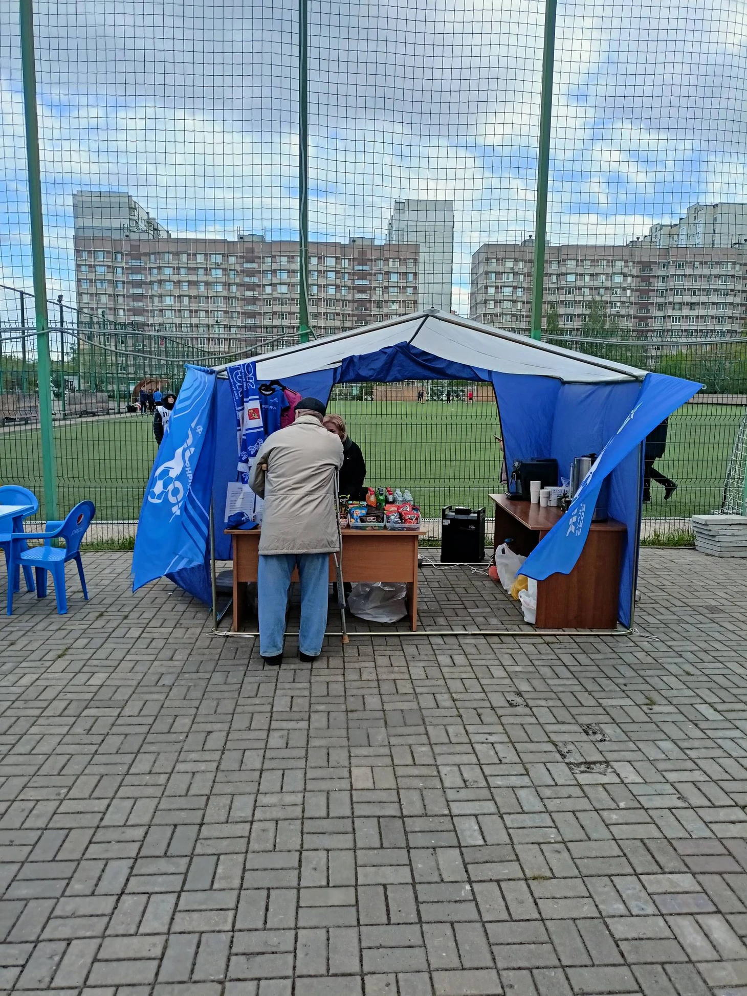 Перед стадионом располагалась палатка с атрибутикой, чипсами, чаем-кофем, - все в одном флаконе. Хотя не отказался бы и от хот-догов, шаурмы и пирожков, но такого богатства рядом не было.