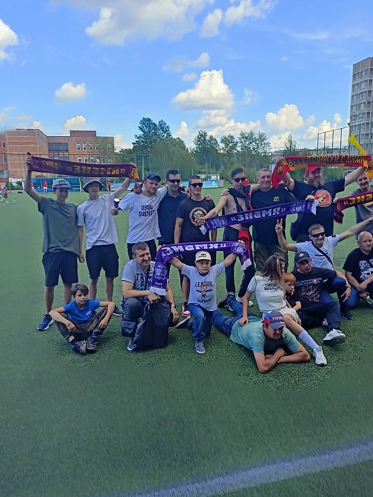 На матч я стараюсь приезжать заранее, и в этот раз решил шикануть - приехал на такси. По приезду на стадион очень рад был встретить своих хороших товарищей - болельщиков «Красного Знамени» (см. первую фотку к посту). Несмотря на то, что матч является районным дерби, никакой взаимной неприязни у нас нет, поэтому тепло обнялись и разойдясь по противоположным трибунам, поддерживали свои команды.