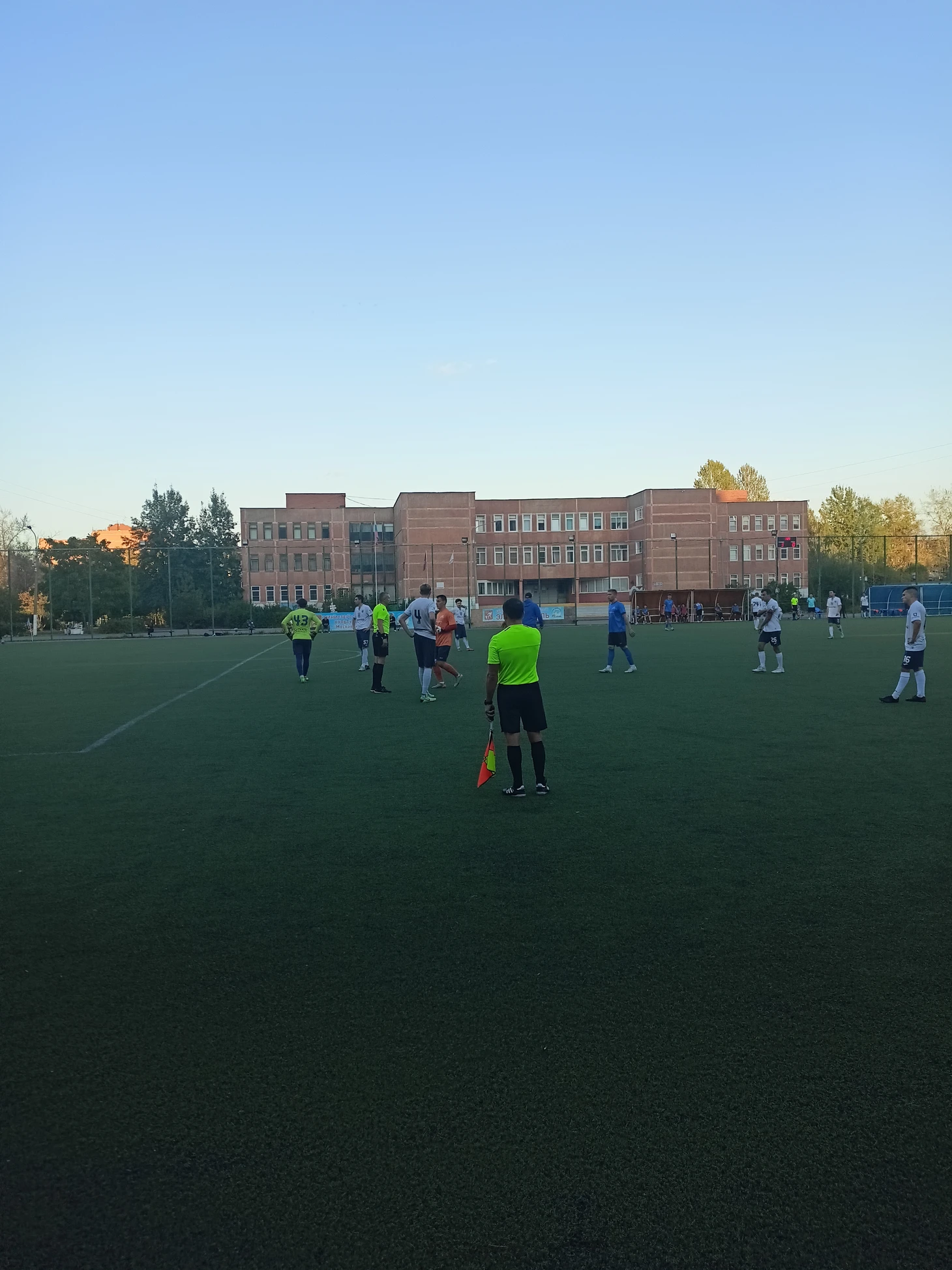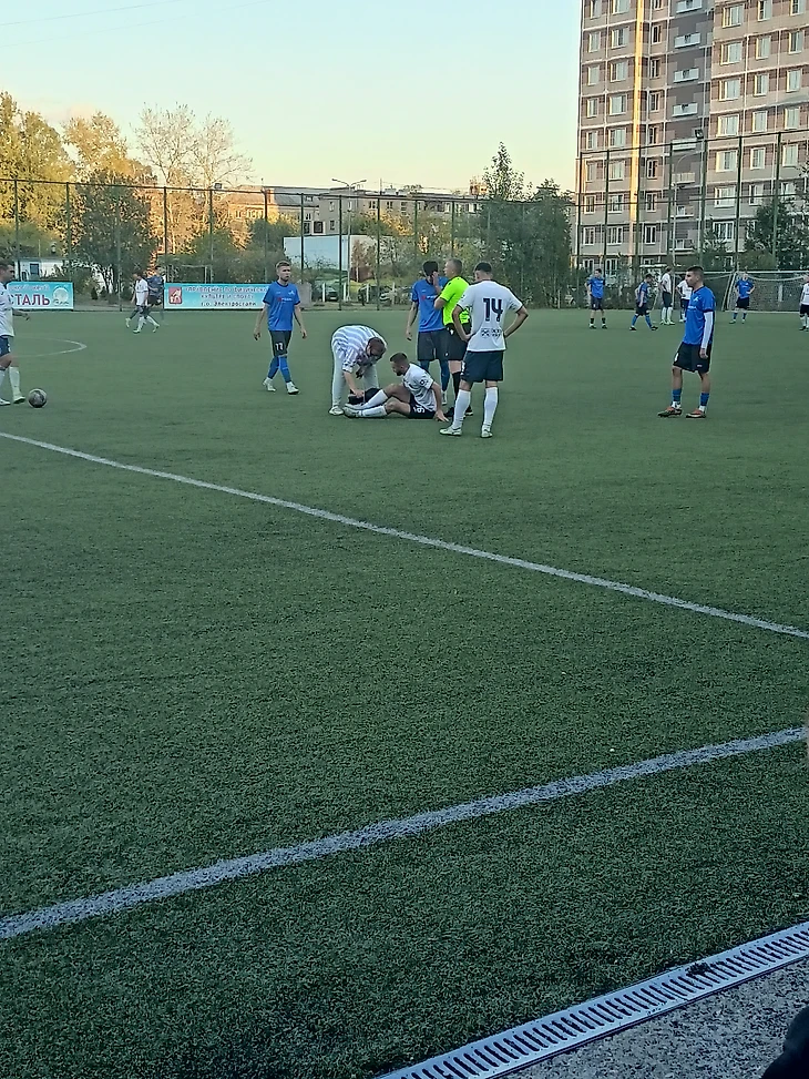 После очередного грубого подката, в результате которого наш игрок вылетел за пределы поля, возникла потасовка, которую я также пошел разнимать. К счастью, ребята немного потолкались, поорали друг на друга, но масштабного мордобоя не получилось. Оно и к лучшему. Надеюсь, что и я приложил свои руки/руку в урегулировании конфликтов, успокаивая игроков обеих команд.