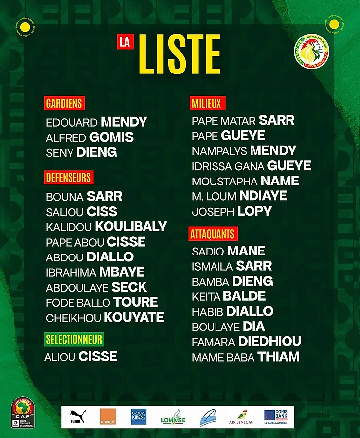 Возможно – Исмаила Сарр («Уотфорд») – новый Мане с похожим амплуа и карьерным путем («Женерасьон Фут» - «Метц» - транзит – Премьер-лига Англии) травмирован с конца ноября, но был вызван в сборную на Кубок. Клуб не отпустил игрока, Сенегальская футбольная федерация пожаловалась в ФИФА.