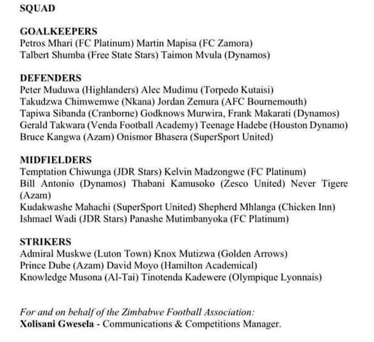 У игроков сборной Зимбабве необычные имена. Марвелус Накамба, Ноуледж Мусона, Маршалл Мунетси, в нынешнем составе есть Тинейдж Хадебе, Адмирал Мускве, Годноуз Мурвира. Есть трагическая история, связанная с футболистом с забавным именем. На Кубке Африки 2017 за сборную играл Хардлайф Звирекви. В марте 2018 года ему ампутировали руку после травмы, полученной в автоаварии.