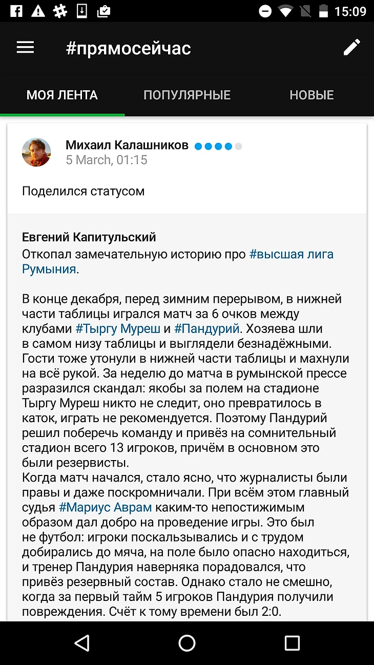 То, чего вы так долго ждали — статусы теперь есть и в Android-приложении. Здесь есть отдельная лента статусов, написанных вашими друзьями (вкладка «Моя лента»), есть самые рейтинговые («Популярные») и все-все статусы в хронологическом порядке («Новые»). Теперь вам будет чем заняться во время матча, когда компьютера нет под рукой.
