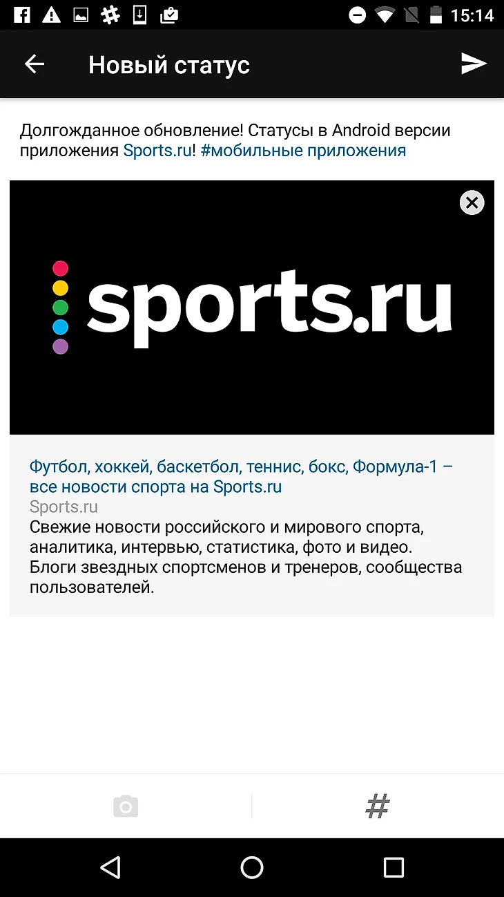 Большое обновление приложения Sports.ru для Android. Включая статусы!