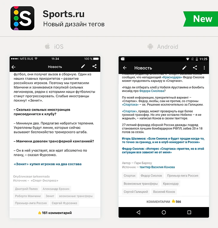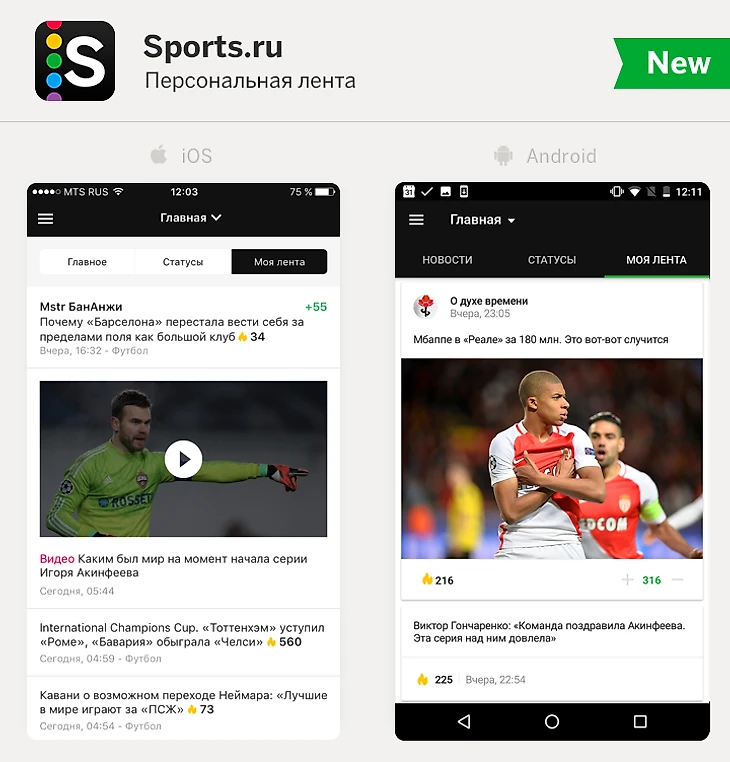 Сегодня для всех стала доступна новая версия флагманского приложения Sports.ru. В этот раз мы выпустили обновление и для iOS, и для Android. Ниже все подробности.