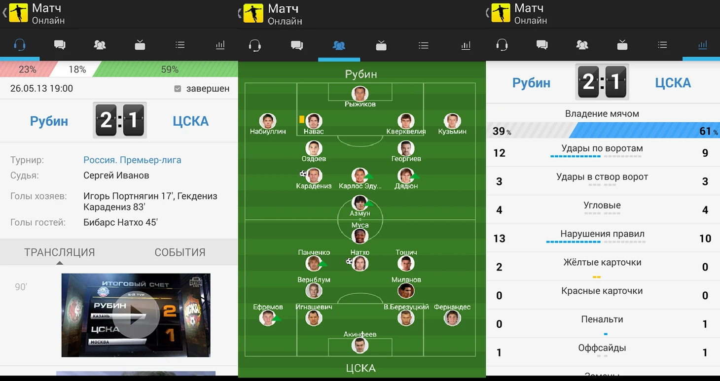 Еще одним преимуществом Scores & Video являются профили игроков и красивейшие интерактивные расстановки.