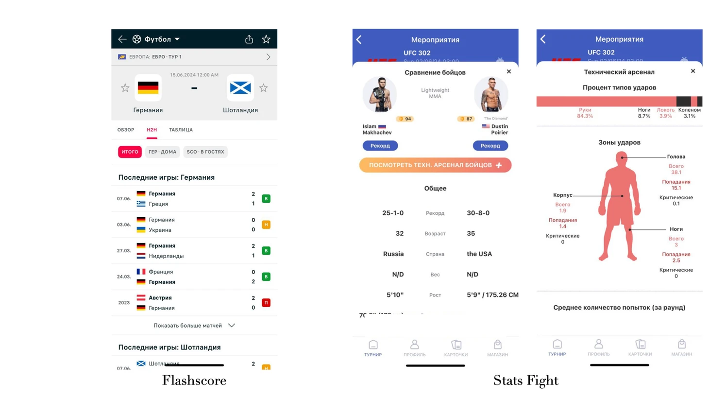 Если вы любите сервисы спортивной статистики, аналитики и ММА, то эта статья для вас. В 2024 году на рынок мобильных приложений вышло приложение Stats Fight: MMA Score & Picks, о котором и будет идти речь в сравнении с самым популярным в России сервисом спортивной статистики – Flashscore.