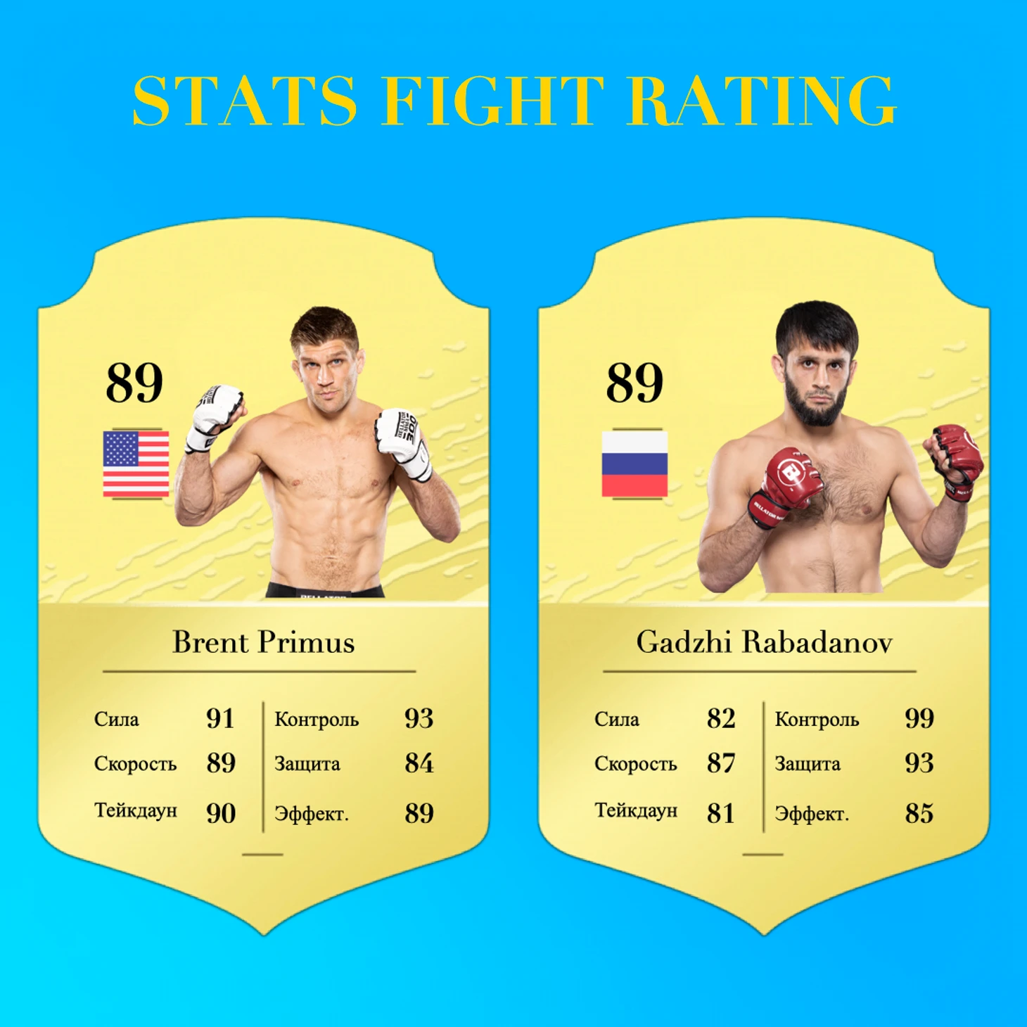 По данным Stats Fight Rating, бойцовский уровень Гаджи Рабаданова и Брента Примуса идентичен. Оба файтера наделены рейтингом 89.