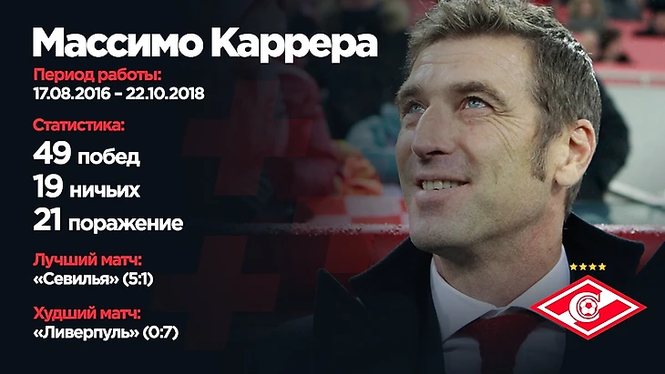 Однако уже в следующем году “Спартак” в последнем туре проиграл “Динамо” (0:1) и упустил серебро, чем сильно разозлил Федуна. Неудачное начало сезона 2018/19 стало катализатором для увольнения Карреры. Ему не простили странные трансферы, привод в команду своих людей, отстранение работников клуба, и домашних поражений от команд уровня “Ростова” и “Арсенала”. Массимо уволили после третьей подряд неудачи на “Открытие-Арене”, а в своем заключительном матче он проиграл Олегу Кононову, который стал следующим главным тренером “Спартака”.