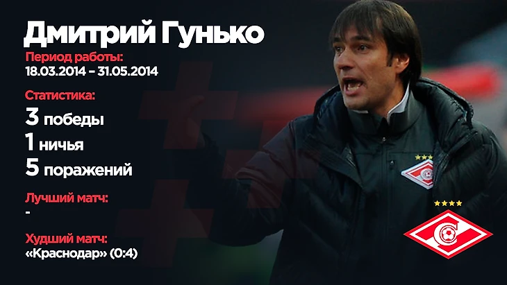 Гунько был назначен после Карпина, и это объективно худший главный тренер в истории “Спартака”. Поражений больше, чем побед, полное отсутствие мысли на поле и неспособность нормально выражать собственные мысли. Да, у Дмитрия было дико мало времени для реализации каких-то идей (если они вообще у него были), но похоже, что он сам тупо не понимал, куда он попал. Квинтэссенция абсолютной беспомощности – в этом батле с Бубновым.