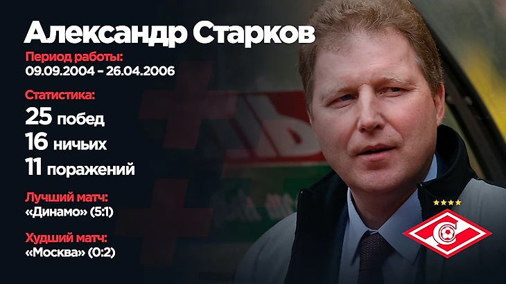 Поначалу у тренера все получалось. В 2005-м году “Спартак” стал вторым, в заключительном туре сыграв вничью с “Локомотивом” (1:1) в Черкизове. На тот момент “железнодорожники” были действующим чемпионом, и все болельщики “красно-белых” были в восторге от того, что их парни так обставили прямого конкурента. Старков ликовал: его ждал дебют в Лиге чемпионов, а это вершина карьеры для любого тренера.