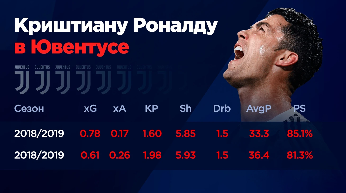 По сравнению с прошлым сезоном, снизилась результативность португальца: к аналогичной отметке в прошлом году, на счету Роналду было 10 забитых мячей и 5 голевых передач (в этом году — 6 голов и 2 ассиста). Криштиану делит первое место в списке лучших бомбардиров команды вместе с Пауло Дибалой - по 6 голов у каждого.