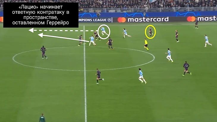 Если честно, причину тактической неосторожности Тухеля можно было увидеть уже в начале первого тайма, когда Геррейро забеспокоился и решил прорваться внутрь зоны Джамала Мусиалы. Попытка Киммиха отобрать мяч у Маттео Гендузи стала неудачной, и мяч попал к Густаву Исаксену из «Лацио», который тут же начал контратаку в оставленном Геррейро пространстве.