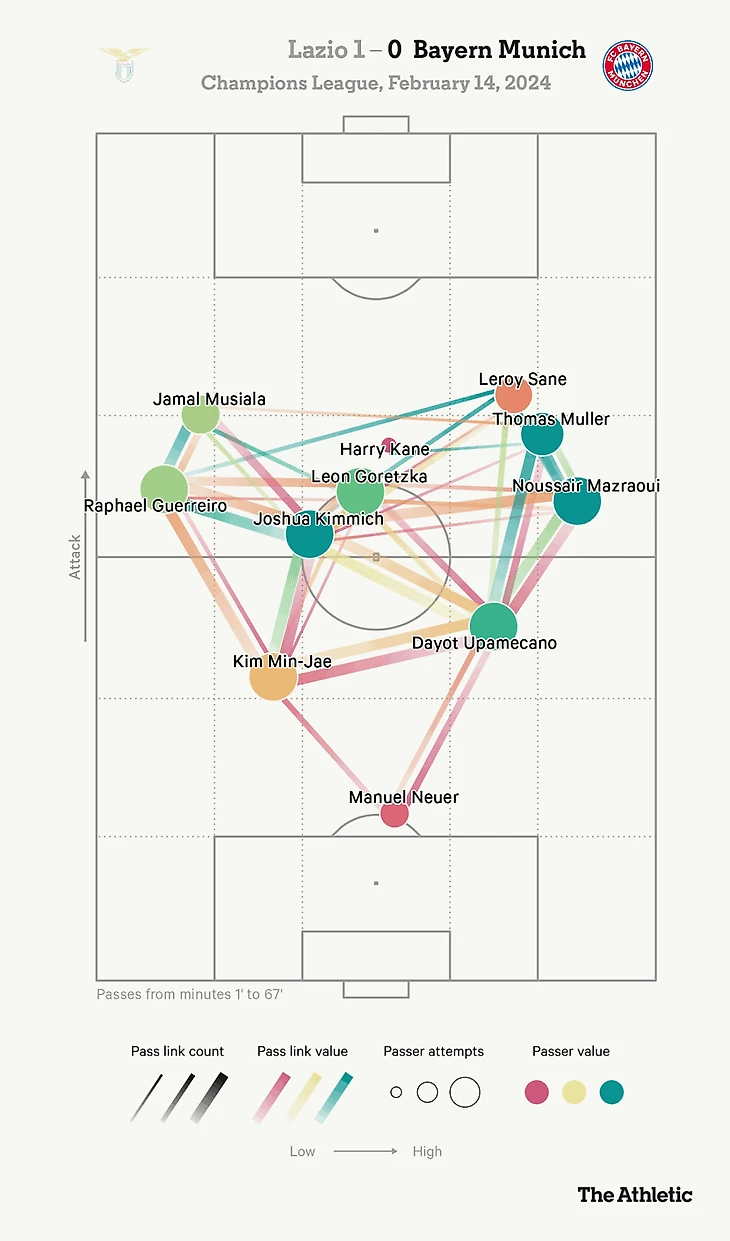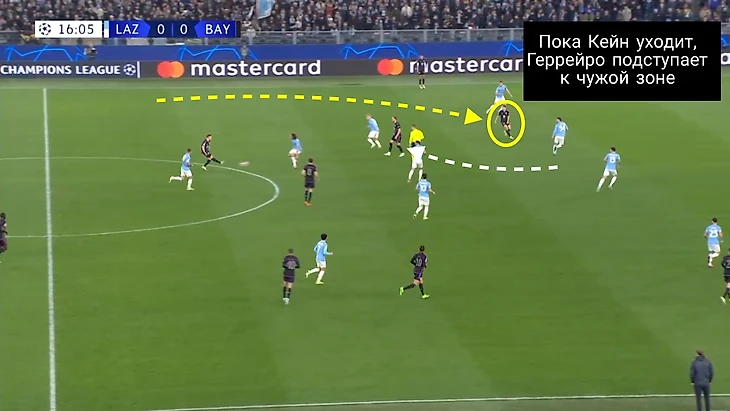В то же время кто-то должен был прорываться за заднюю линию «Лацио». Это были не защитники. Это редко были вингеры, которые оставались в центре поля, чтобы дать «Баварии» надежный выход из обороны при владении мячом. И это был не Кейн, который является совершенно другим нападающим, чем тот, к которому привык его клуб.