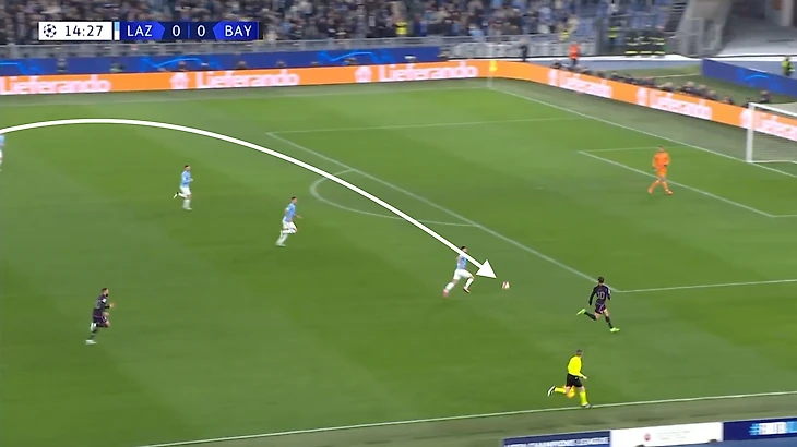 Однако против «Лацио» его партнеры по команде редко видели Кейна в полузащите, а значит, центральным защитникам не нужно было следить за его нахождением. А если и приходилось, то риск был невелик, поскольку Мюллер не мог одновременно выскочить на фланги и бежать за Кейном. У «Баварии» просто не было такого количества игроков между линиями, чтобы создать проблемы для консервативной схемы «Лацио» 4-1-4-1.