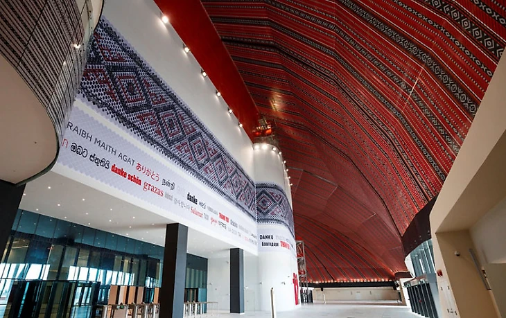 Из нескольких арен ФИФА Чемпионата мира 2022 в Катаре именно Al Bayt Stadium отличает самое большое число отсылок в отделочных решениях к местной архитектуре. Традиционные материалы, орнаменты и даже ткани присутстсвуют как в VIP ложах, так и в общественных пространствах стадиона.