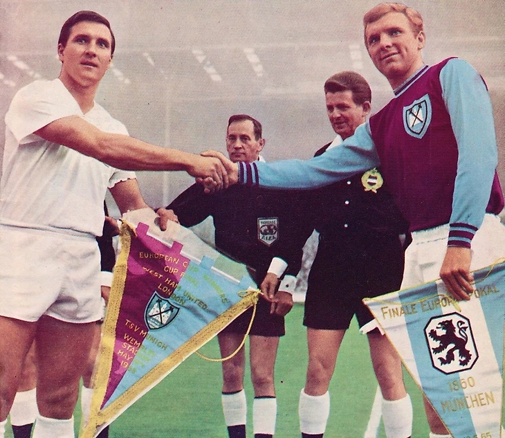 Вы могли конечно этого не знать, но и «ТСВ Мюнхен 1860» в том же 1966 г., что и сборная Англии, ставшая в итоге чемпионом мира, в первый и единственный раз в своей истории выиграл Бундеслигу. Хотя победе в чемпионате ФРГ предшествовал еврокубковый финал, остающийся пока единственным. У мюнхенцев к тому моменту было за плечами 2 победы в Кубке Германии, одна из которых пришлась на военный 1942 г., а последняя – на 1964 г. Да и «Вест Хэм» подходил к финалу в ранге обладателя Кубка своей страны. Борьба в финале получилась напряженной и до 70-й минуты на табло «Уэмбли» горели нули. Но «молотобойцам» повезло еще, что они получили по сути домашний финал. С интервалом в 2 минуты Алан Сили уложил дубль, отличившись на 70-й и 72-й из них. Почти 100К зрителей, собравшихся на лондонских трибунах, горячо приветствовали долгожданный триумф хозяев. Так «Вест Хэм» написал свою первую еврокубковую историю.