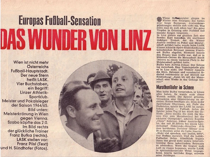 Буфка принял эстафету у Шлехты в декабре 1964 г., покинув пост наставника «Моравской Остравы» (нынешний «Баник»). Тренер из ЧССР заложил в основу своей методики тренировки фактически до полного изнеможения. В качестве ассистента ему помогал Ласло Симко. Последний попал в Австрию будучи военнопленным. Здесь он начал свою карьеру в «Брайтбунне», откуда потом перебрался в ЛАСК. Закончив карьеру игрока он стал ассистентом Буфки в чемпионском сезоне команды из столицы Обер-Австрии. Надо сказать, что тогда австрийский чемпионат носил название Штатслига; Бундеслига появится только в сезоне 1974/75. Тогда в австрийском чемпионате играло 14 команд, а первенство игралось в 2 круга. ЛАСК по итогам первенства одержал 14 побед, 8 игр свел вничью и лишь 4 проиграл. Подопечные Буфки забили 49 и пропустили 29 мячей. С 36-ю очками ЛАСК на одно опередил венские «Рапид» и «Адмиру». Вообще, в том сезоне Вену представляло 8 (!!) клубов. ЛАСК помимо «Рапида» и «Адмиры» обошел также «Винер-Шпорт», «Вена Фёст» и «Аустрию», ставшую 7-ой. Из лиги по итогам сезона вылетели «Винер АК», «Ваккер» и грацский «Штурм». Более того, ЛАСК стал на тот момент лишь 8-м клубом, бравшим чемпионат Австрии, но первым коллективом НЕ из Вены, сделавшим это.