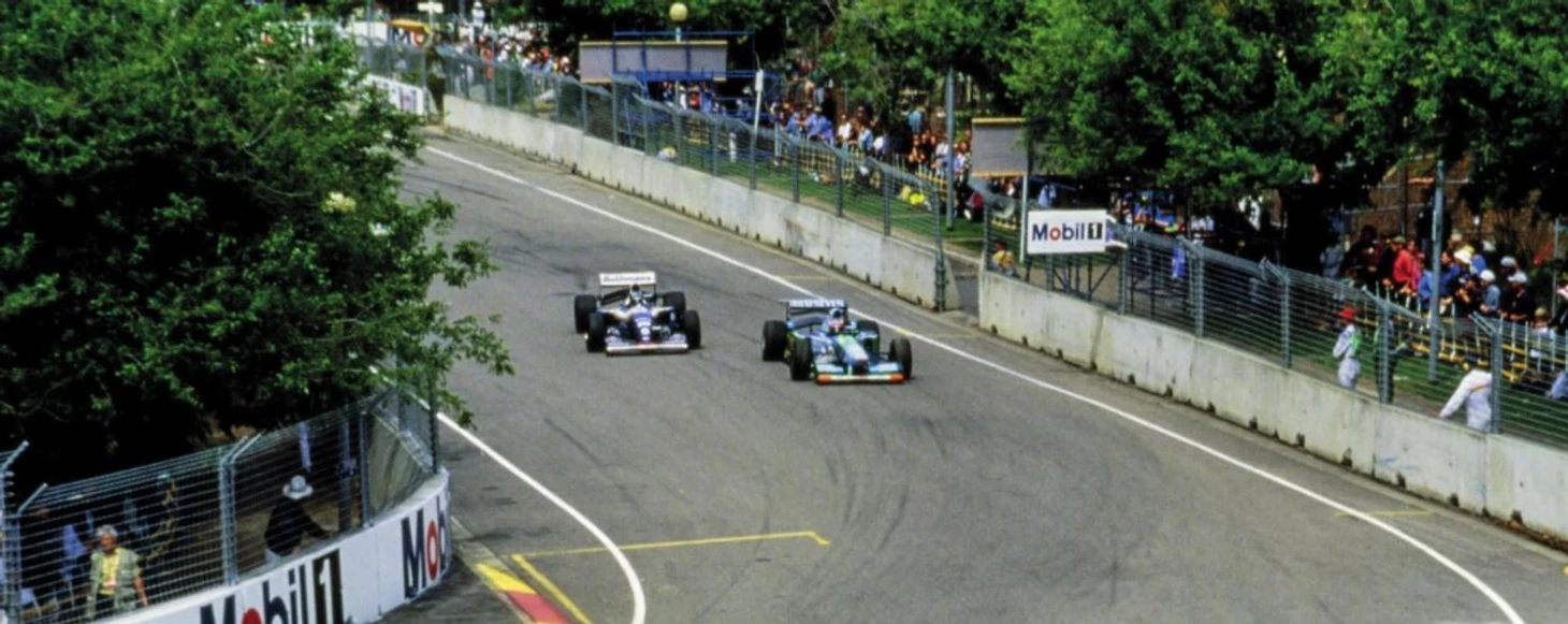 Аделаида 1994, Хилл готовится атаковать Шумахера, не зная, что машина того уже повреждена...