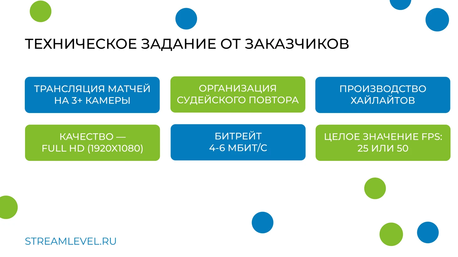 Качество трансляции: не ниже Full HD (1920×1080), 4–6 Мбит/с