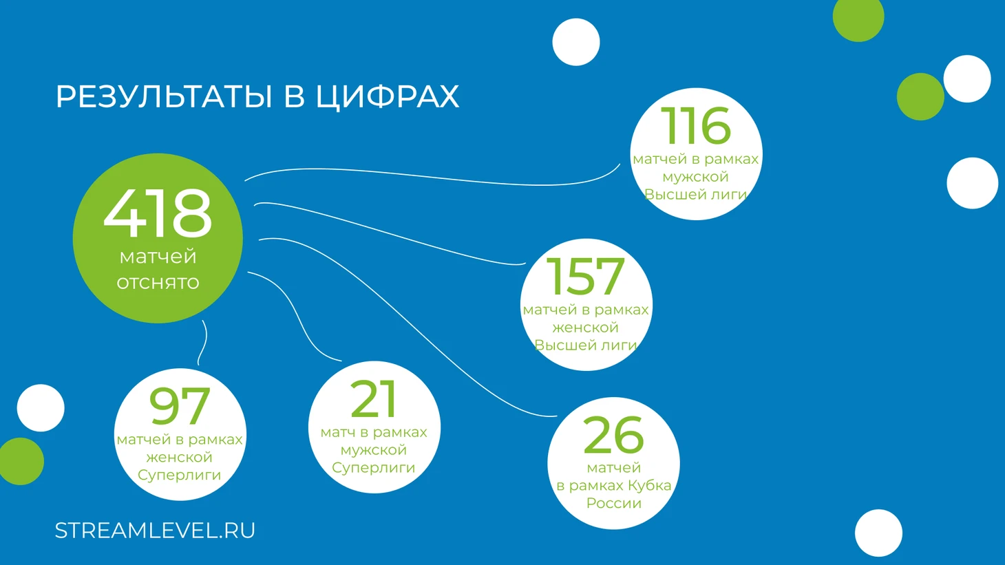 Качественная трансляция матчей (Высшая лига, Суперлига, Кубок России) по регламенту РФБ: