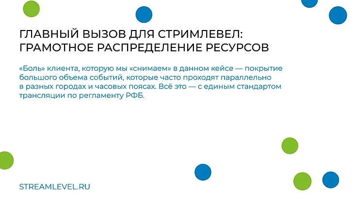 Основной вызов: покрытие большого количества матчей, проходящих параллельно в разных городах и часовых поясах.