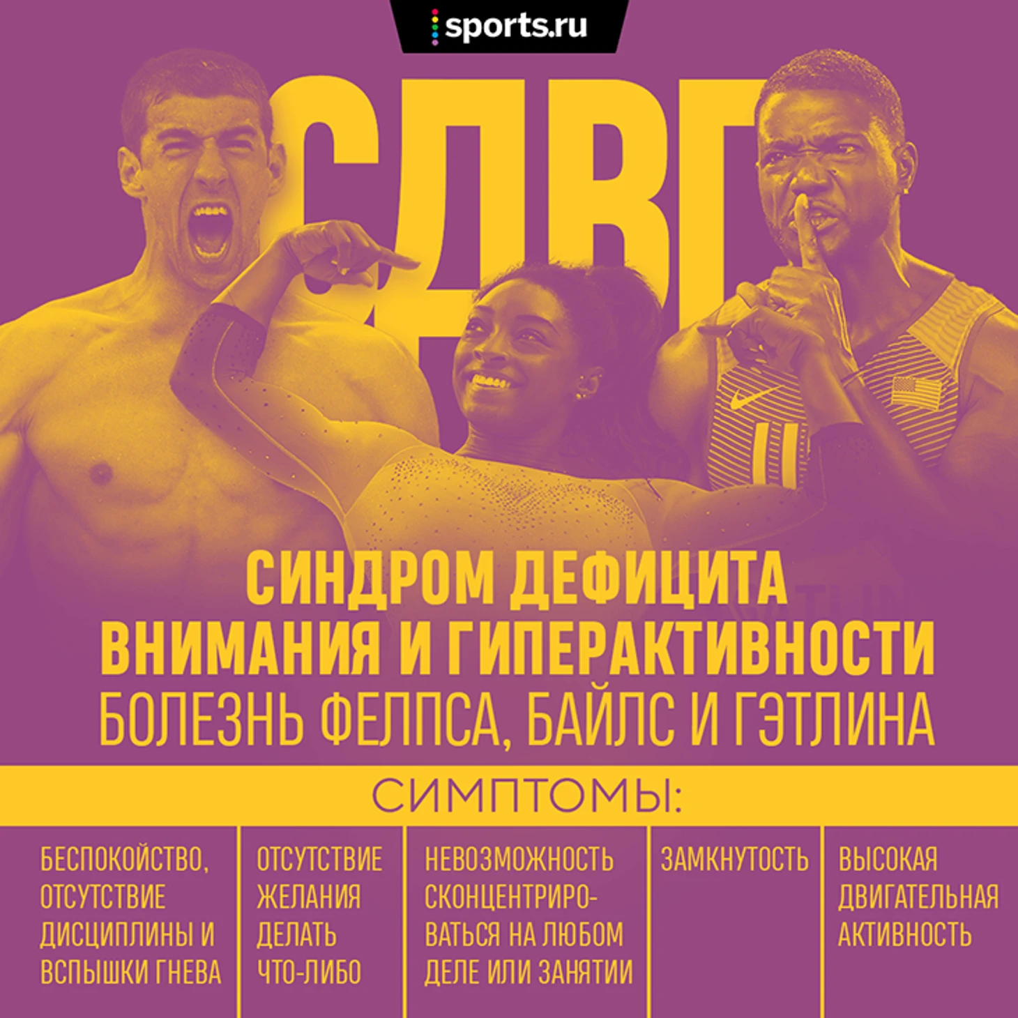 Это распространенный диагноз в американском спорте: от СДВГ страдали многие топ-атлеты, что не помешало им добиться успеха. Что же это за синдром и почему американцы так часто болеют?